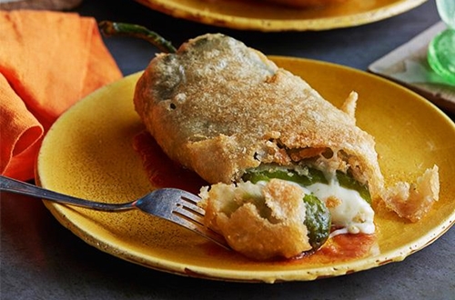 I chiles rellenos, che tradotto significa “peperoni ripieni” sono un piatto tradizionale messicano che consiste di peperoni jalapenos, non piccanti, farciti con formaggio, poi avvolti in una spumosa pastella di uova ed infine fritti.