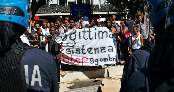 Il presidio era stato inizialmente autorizzato dalla Questura, ma con il trascorrere dei giorni era diventato abusivo, alimentato dalla presenza di persone estranee allo sgombero di via Curtatone. All’intervento di ieri mattina e’ seguito il si’ di altri migranti tra quelli del presidio che hanno accettato le soluzioni abitative proposte dal Campidoglio, portando a 29 (di cui 12 donne) il numero dei favorevoli ad essere accolti nelle strutture di accoglienza di Roma Capitale. Intanto sono state definite le linee guida della circolare “misure in materia di occupazioni arbitrarie di immobili”, circolare firmata dal capo di gabinetto del Viminale, Mario Morcone, e trasmessa a tutti i prefetti. Tra esse, l’istituzione di una cabina di regia, nell’ambito del ministero dell’Interno; la “mappatura” dei beni immobili, pubblici e privati, inutilizzati, compresi quelli sequestrati e confiscati alle mafie; la vigilanza dei territori e degli immobili tesa a prevenire la nascita e, soprattutto, il consolidamento di situazioni di illegalita’; la tutela dei soggetti “fragili” e dei nuclei familiari in situazioni di disagio economico e sociale. Le nuove disposizioni – nel solco di quanto gia’ previsto dall’articolo 11 del recente decreto legge sulla ‘sicurezza urbana’ – richiamano “la tutela e il contemperamento di molteplici interessi”: con le esigenze di ordine e sicurezza pubblica, entrano infatti in gioco sia i diritti dei proprietari, sia le condizioni degli occupanti.[irp]