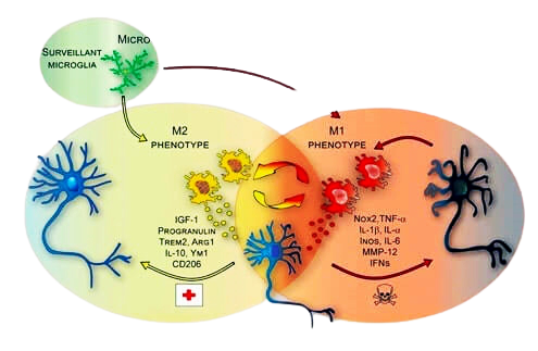 Schematizzazione del ruolo della microglia nella neuro degenerazione