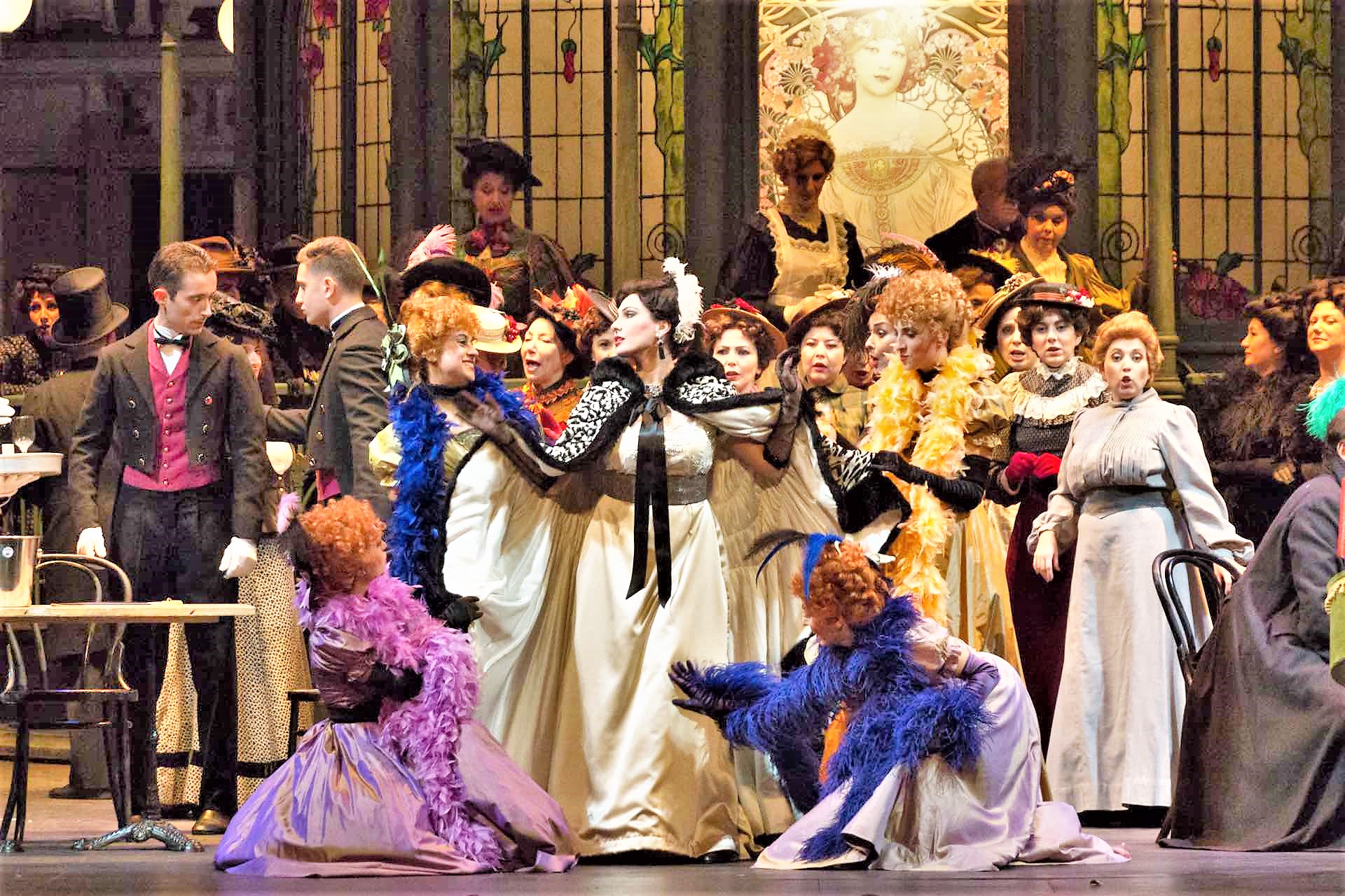 Negli stessi ruoli Vincenzo Costanzo e Vittorio Prato, anche loro appassionati Rodolfo e Marcello, Vincenzo Costanzo in particolare, supportato da un caldo timbro tenorile che deve però ancora trovare la strada verso il registro acuto. Le vicende dei due amici scorrono tra le belle scene e i costumi di Francesco Zito e la regia di Mario Pontiggia, ben ripresa da Angelica Dettori, riportano alla Parigi Fin de Siecle, alla gaia, ma sofferta vita di Bohème, dove la gioventù, pur volendo non riesce a fermar.e la morte. Nulla può infatti la dolce Mimì contro il male che l’affligge, se non cercare di vivere il tempo che le è concesso riscaldata dall’amore di Rodolfo. Un amore che sembra sbiadire quando la serietà del male della giovane fioraia colpisce lo spensierato poeta, ma che rinasce più forte e consapevole anche se ci si prepara alla separazione definitiva. Puccini gioca con le corde dell’animo umano sottolineando ogni cambiamento d’umore dei personaggi con una musica ora allegra, ora suadente, ora seducente, sino a culminare nello strazio doloroso della morte. Mimì, così come un’altra eroina pucciniana, Butterfly, esala l’ultimo respiro nel tripudio dell’orchestra, con il suo nome gridato dall’amato. Una consacrazione per una vita spezzata troppo presto. Mimì, la fanciulla che non sa perché la chiamino così, capace di inebriarsi al primo raggio di sole primaverile, cui “piaccion quelle cose che han si dolce malia…”, “… che han nome poesia…”.