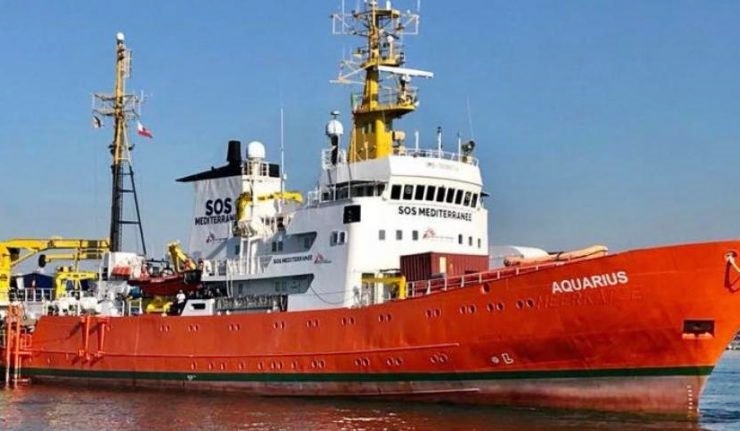 In mare aperto la nave di una Ong, la Aquarius, in attesa di attraccare e che ospita 629 persone