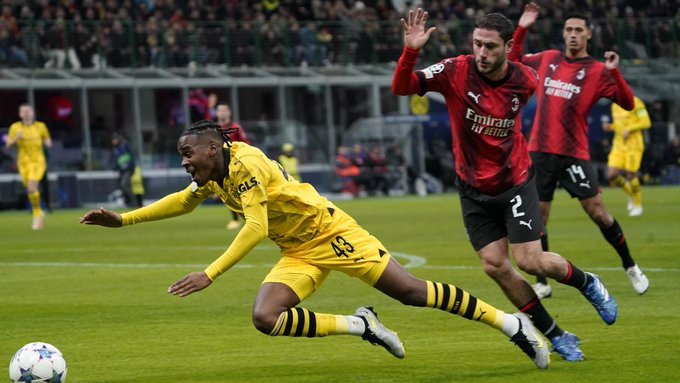 Il Milan 3-1 a San Siro e compromette la qualificazione agli ottavi di Champions. Ora serve un miracolo nel prossimo turno a Newcastle guardando anche i risultati del Psg. Micidiale l’1-2 a cavallo della mezzora della ripresa dei tedeschi a segno con Bynoe-Gittens e Adeyemi. Primo tempo di grande intensità a San Siro. Dopo cinque minuti Chukwueze riceve in area e carica il sinistro, la conclusione viene fermata da Schlotterbeck che interviene con le mani e per l’arbitro è calcio di rigore. Dal dischetto Giroud si fa ipnotizzare da Kobel che para. Al 9′ si invertono i penalties. Calabria atterra Gittens: rigore per il Dortmund.