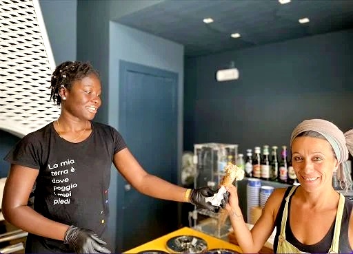 “Per me la parola ‘Barconi’ è associata a ricordi molto brutti, al mio viaggio nel Mediterraneo eppure questa parola oggi significa speranza. Avevo 16 anni quando mi sono messo in viaggio e ci sono voluti cinque mesi per raggiungere Pozzallo, è stata molto dura. Ma oggi sono responsabile di una gelateria in Piazza Mediterraneo e anche questa è una cosa che mi fa sperare”, racconta Alagie Malick, che si occupa della gelateria assieme a Leslie e Christine.