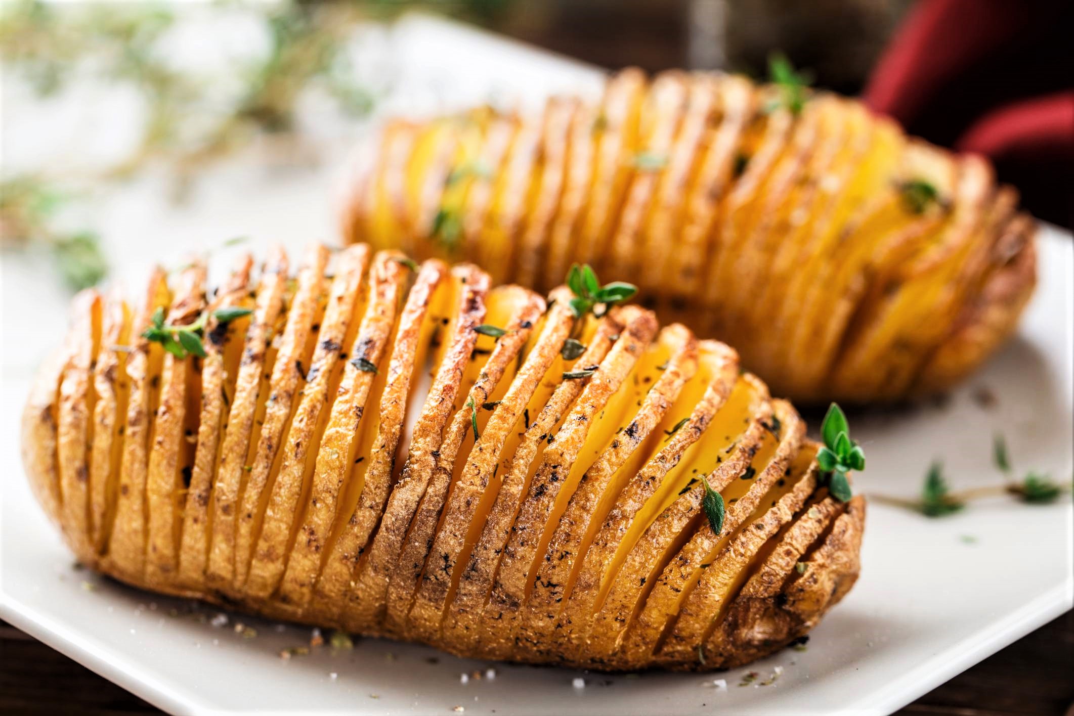 Le patate Hasselback sono un piatto molto conosciuto della cucina svedese. Fu il ristorante Hasselbacken a Stoccolma, infatti, ad inventare nel 1700 questa variante a fisarmonica delle classiche patate al forno. La ricetta originale prevede la cottura con la buccia e l’uso del burro, ma è possibile ottenere delle patate ugualmente croccanti anche senza burro e, per un’alternativa light e vegetariana, possono essere condite solo con dell’olio extra vergine d’oliva e rosmarino. In alternativa, potete invece arricchire le patate con altre erbe e, per una variante molto golosa, potete utilizzare anche del formaggio grattugiato (parmigiano o grana padano) e della pancetta. Qui seguiremo la ricetta classica!