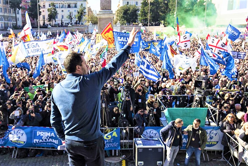 Matteo Salvini chiede “unione” alla piazza e al Paese e tenta di proiettare il suo Movimento – primo nei consensi, tiene e rimarcare – oltre i confini tradizionali della Lega. In piazza del Popolo, a Roma, per la seconda volta dopo la prima grande manifestazione nazionale celebrata nel febbraio 2015, il segretario leghista parla al ‘suo’ popolo ma non solo. Per la prima volta su un palco di una manifestazione del partito che fu di Umberto Bossi c’è il Tricolore sotto lo slogan ‘L’Italia rialza la testa’, le bandiere italiane sono presenti anche nella piazza al fianco dei tradizionali vessilli autonomisti. E il discorso del segretario ha toni governativi, ecumenici, nelle citazioni di Giovanni Paolo II.[irp]