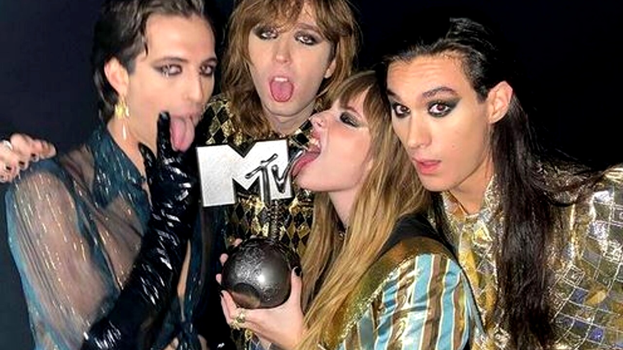 Dopo il Festival di Sanremo, l’Eurovision Song Contest e il successo negli Stati Uniti, i Maneskin si sono aggiudicati il premio della categoria “Best Rock” agli MTV Europe Music Awards 2021 a Busapest. Nella storia degli European Music Awards, è la prima volta per l’Italia in una categoria internazionale. La band romana ha superato artisti del calibro dei Coldplay, Foo Fighters, Imagine Dragons e Killers, nominati nella stessa categoria e si è esibita con Mammamia con look nero e oro, tutti scintillanti e Damiano in slip di pelle e reggicalze.