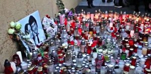 Manifestazione a Bratislava, in Slovacchia, per rendere omaggio al giornalista Jan Kuciak, ucciso insieme alla fidanzata Martina Kusnirova nella sua...