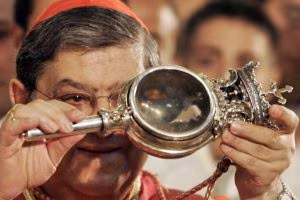 A Napoli si è rinnovato il miracolo della liquefazione del sangue di San Gennaro. Prodigio che avviene tre volte l’anno: il 19 settembre, data in cui fu decapitato il martire nel 305 d.C.; il 16 dicembre, nell’anniversario di una terribile eruzione del Vesuvio del 1631 arrestata, secondo credenza popolare, per intercessione del Santo; e la prima domenica di maggio, in ricordo della traslazione delle spoglie mortali da Pozzuoli alle catacombe di Capodimonte.