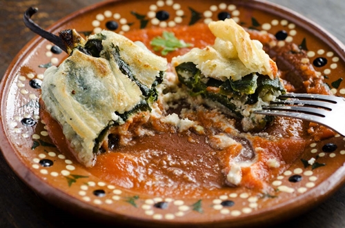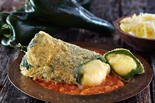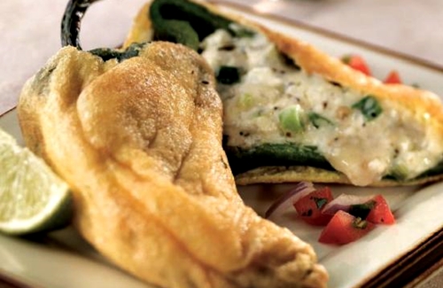 I chiles rellenos, che tradotto significa “peperoni ripieni” sono un piatto tradizionale messicano che consiste di peperoni jalapenos, non piccanti, farciti con formaggio, poi avvolti in una spumosa pastella di uova ed infine fritti.