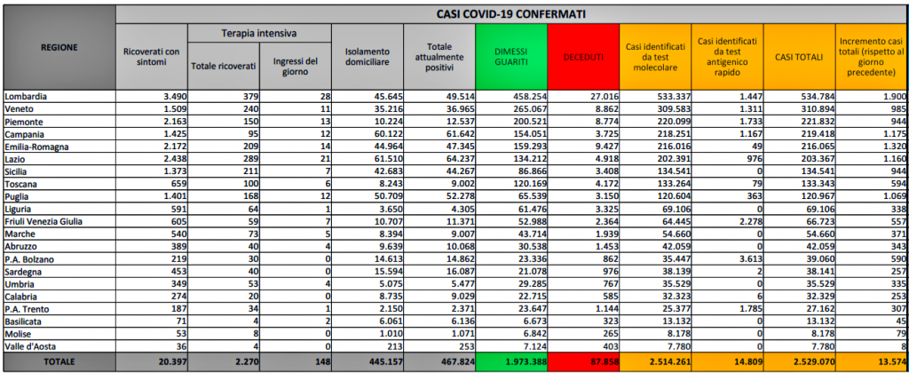 È di 13.574 l’incremento dei casi nel nostro Paese nelle ultime 24 ore, 477 sono le vittime