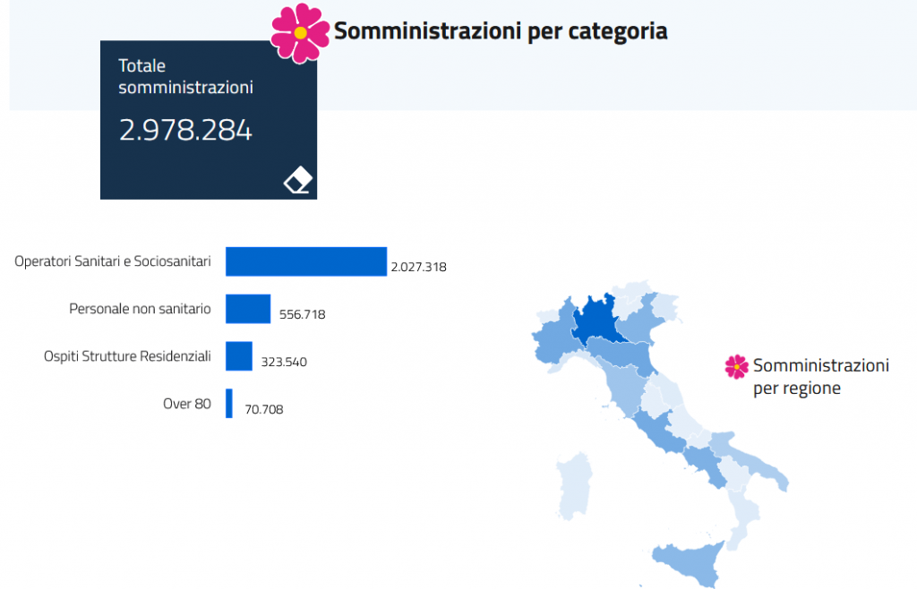 A oggi sono 2.978.284 le dosi di vaccino somministrate