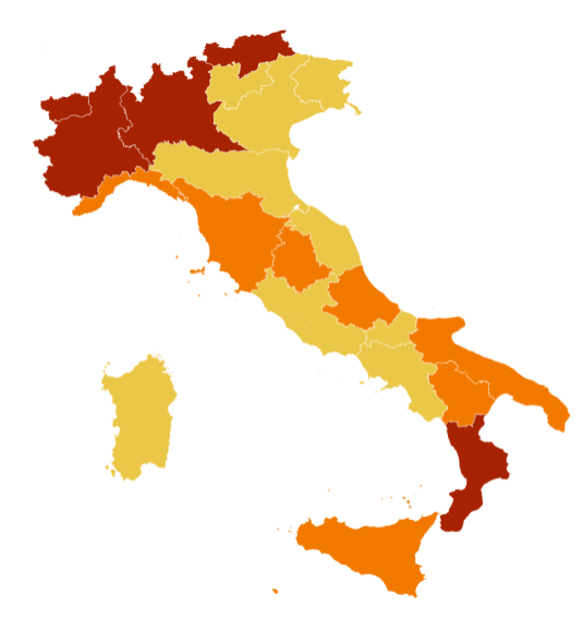 – Comprende: Lombardia, Piemonte, Valle d’Aosta, Calabria e la Provincia di Bolzano– Spostamenti: le zone rosse sono quelle in cui vigono le regole più rigide. È vietato qualsiasi spostamento (anche all’interno del proprio comune) se non per motivi di lavoro, urgenza o necessità. Per circolare serve l’autocertificazione, da consegnare in caso di controllo. Rimane comunque permesso svolgere attività fisica all’aperto (corsa, bicicletta) e attività motoria (passeggiata).