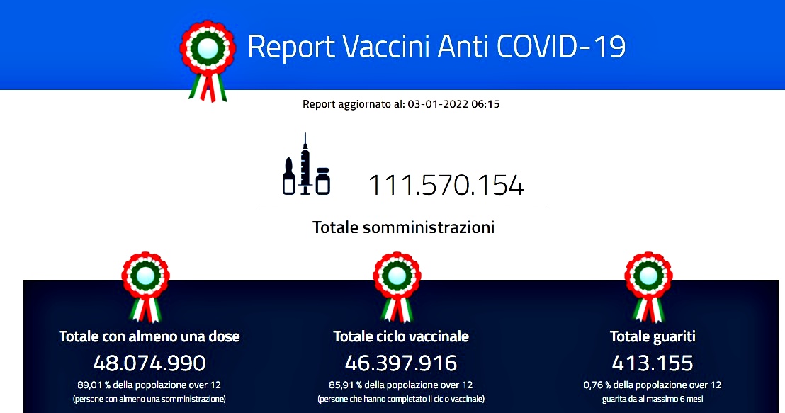 Intanto, la struttura commissariale guidata dal generale Francesco Paolo Figliuolo fa sapere che “nel mese di dicembre il numero di somministrazioni effettuate è stato di 14,5 milioni. Per il mese di gennaio 2022, alla luce dei risultati positivi fatti registrare dalle Regioni/Province autonome nel periodo delle festività natalizie e di fine anno, con punte di quasi 650 mila somministrazioni giornaliere, si potranno raggiungere i 15 milioni di somministrazioni”. “Il fabbisogno di vaccini per il mese di gennaio verrà assicurato dalle dosi di Pfizer e Moderna nella disponibilità della Struttura Commissariale. Nel complesso, i quantitativi sono in grado di esprimere una potenzialità di 26 milioni di somministrazioni”, conclude la nota.