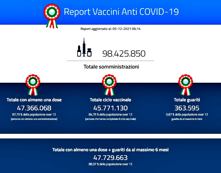 Il tasso di positività al Covid in Italia si ferma a un passo dal 3%. Passa oggi al 2,9% dal 2,6% registrato ieri. Con quattro pazienti in più di sabato di ricoverati per Coronavirus in terapia intensiva: oggi 736. Gli ingressi giornalieri sono 45. È la fotografia odierna del Covid scattata dal bollettino giornaliero di ministero della Salute e Istituto Superiore di Sanità, secondo cui nelle ultime 24 ore ci sono stati 43 decessi, a fronte dei 75 di ieri. Le vittime in Italia della pandemia da Coronavirus arrivano così a 134.195. Mentre il numero di contagiati risulta di 5.109.082 persone. In tutto a oggi sono 15.021 i nuovi casi di Coronavirus in Italia (ieri erano risultati 16.632), con 525.108 tamponi effettuati su un totale di 122.335.