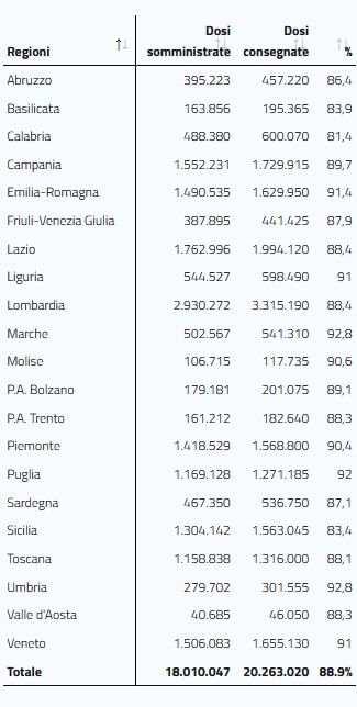 Oltre 18 milioni di dosi inoculate