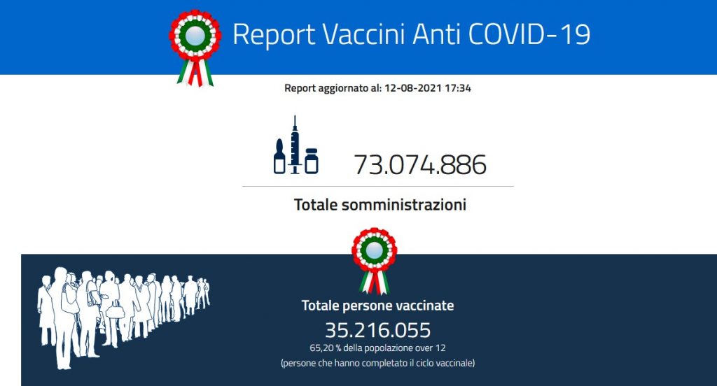Intanto sta procedendo a buoni ritmi la campagna vaccinale, come sottolineato oggi dal Commissario per l’Emergenza Francesco Figliuolo, che ne ha ricordato i numeri: “Oggi in Italia si raggiungeranno 73 milioni di dosi somministrate, pari al 70% di persone raggiunte con prima dose – considerando la popolazione vaccinabile over 12 – e oltre il 65% di quelle completamente vaccinate”. E anche in Italia si inizia a parlare di terza dose: entro la fine di settembre si dovrebbe partire con i pazienti fragili, ma per le altre categorie bisognerà attendere i risultati di due studi dell’Istituto Superiore di Sanità.