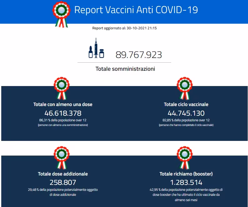 Sono complessivamente 4.554.985 i guariti o dimessi, mentre sono 80.381 gli attualmente positivi. Compresi quelli molecolari e gli antigenici, i tamponi totali effettuati sono stati 477.352. Il tasso di positività è all’1%. Sul fronte del sistema sanitario, sono +20 i posti letto occupati in terapia intensiva, ora sono quindi in totale 346.