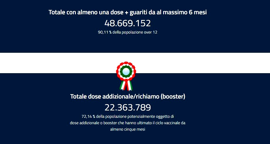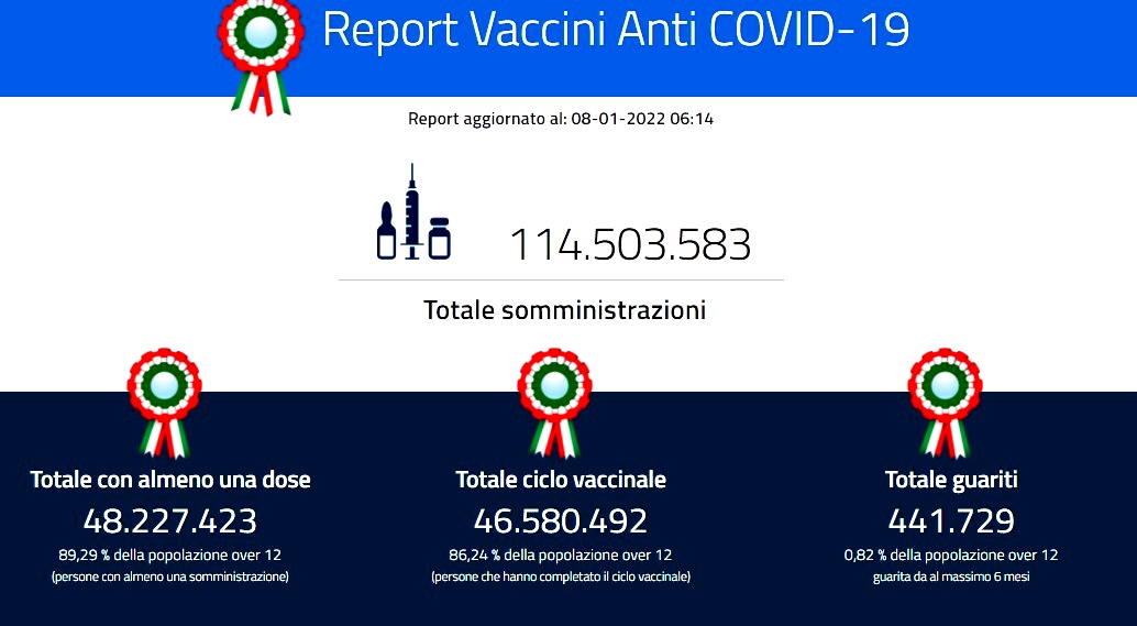 Secondo il bollettino pubblicato dal ministero della Salute, oggi si registrano 197.552 casi (ieri erano stati 108.304) e 184 morti (in calo rispetto a ieri, quando erano stati 223). Sono 1.220.266 i tamponi molecolari e antigenici per il Coronavirus effettuati nelle ultime 24 ore in Italia (ieri 492.172). E il tasso di positività è al 16,2%, in calo rispetto al 22% di ieri. Ennesimo balzo dei ricoveri (+339, in tutto 14.930), mentre sono 1.557 i pazienti in terapia intensiva, 58 in più in 24 ore nel saldo tra entrate e uscite. Gli ingressi giornalieri sono 154. La regione con il maggior numero di nuovi casi nelle ultime 24 ore è la Lombardia (48.808), poi il Veneto (21.056), il Piemonte (18.220), l’Emilia-Romagna (14.901) e il Lazio (14.850).