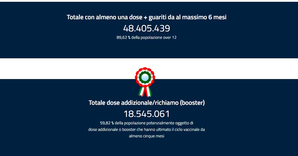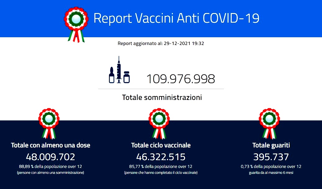 dpc-covid19-ita-scheda-regioni-latestPer il secondo giorno consecutivo, è stato battuto il record di contagi da coronavirus in Italia. Secondo il bollettino odierno del ministero della Salute, ci sono stati altri 98.020 casi e 136 morti. Con oltre un milione di tamponi effettuati, il tasso di positività è aumentato al 9,5 per cento. Ieri i casi erano stati 78.313, le vittime 202; il tasso di positività registrato nell’ultimo rilevamento era invece al 7,57 per cento. I guariti sono stati 21.871, mentre i ricoveri e le terapie intensive sono aumentati rispettivamente di 489 e 40 unità. Le dosi di vaccino complessivamente somministrate sono, secondo l’ultimo rilevamento, 109.646.086.