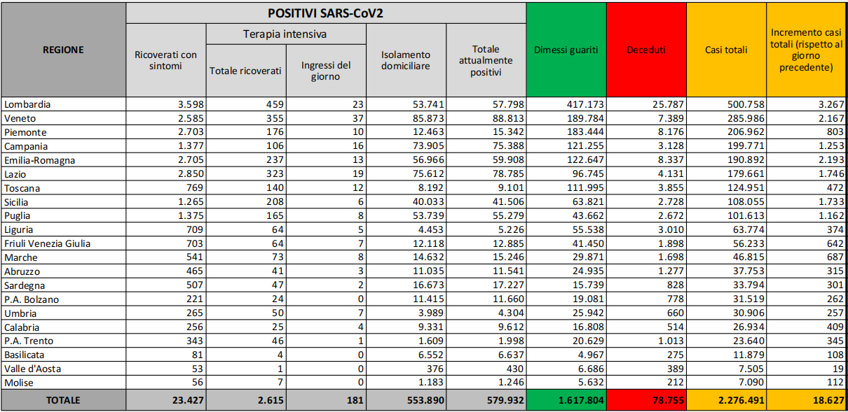 Sicilia 108.055 (+ 1733, +1,63%; ieri +1.839 )
