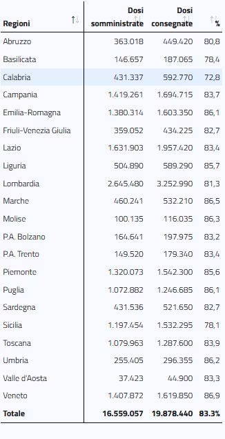 Nelle ultime 3 settimane il numero di dosi inoculate è aumentato del 35,5%
