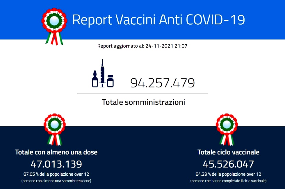 Sono in tutto 4.661.853 le persone guarite o dimesse, mentre quelle attualmente positive sono in tutto 159.317, pari a +4.807 rispetto a ieri (+2.996 il giorno prima). Compresi quelli molecolari e gli antigenici, sono stati 562.505 i tamponi totali processati, dunque 126.775 in meno rispetto ai 689.280 di ieri. Il tasso di positività, ieri pari all’1,4%, sale al 2,2% (l’approssimazione di 2,21%). Sul fronte del sistema sanitario non si ferma la crescita delle degenze in ogni area. Sono infatti +32 (ieri +90) i posti letto occupati nei reparti Covid ordinari, per un totale di 4.629 ricoverati. Sono +13 (ieri +11) i posti letto occupati in terapia intensiva: ora sono 573 i malati più gravi, con 49 ingressi in rianimazione (ieri 61).