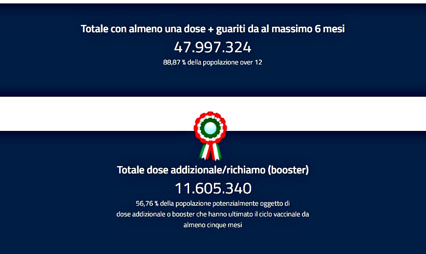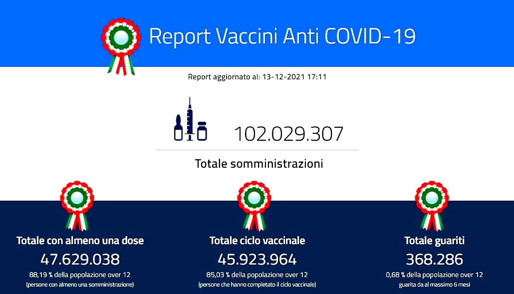 Secondo l’odierno bollettino del ministero della Salute, sono 12.712 (ieri 19.215) i nuovi contagiati da Covid-19 registrati nelle ultime 24 ore, 98 (ieri 66) i decessi. Sale così ad almeno 5.238.221 il numero di persone che hanno contratto il virus Sars-CoV-2 (compresi guariti e morti) dall’inizio dell’epidemia mentre le vittime raggiungono un totale di 134.929 da febbraio 2020.