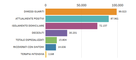 Saliti a 99.023 i guariti, con un incremento di 2.747 rispetto a ieri. Giovedì i pazienti dimessi e guariti erano stati 3.031. Prosegue anche oggi il calo dei ricoverati in terapia intensiva: sono 1.168 i pazienti nei reparti, 143 in meno rispetto a ieri. In Lombardia sono 400, 80 meno di ieri. Le persone ricoverate con sintomi sono invece 14.636, con un decremento di 538 rispetto a ieri. Infine, sono 72.157 le persone in isolamento domiciliare, 982 in meno rispetto a ieri.
