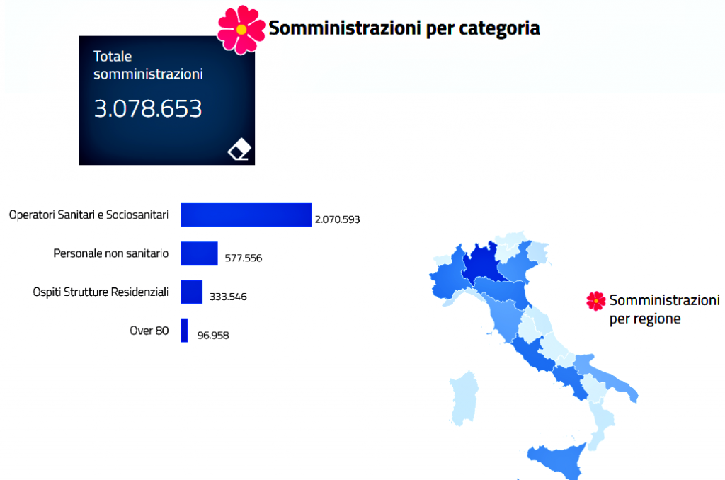 E’ quanto emerge dall’odierno bollettino del ministero della Salute-Iss. La Lombardia è la regione con più nuovi casi: 1.696, seguita dalla Campania con 1.135. I ricoveri in terapia intensiva, su scala nazionale, crescono di 154 unità (30 in Lombardia e 24 in Puglia i dati regionali più alti), per un totale di 2.074 posti di terapia intensiva occupati in tutto il Paese e un saldo giornaliero di 15 unità in meno tra ingressi e uscite. I dimessi-guariti sono a oggi in totale oltre 2milioni e 251mila. I ricoverati con sintomi nei reparti ordinari sono ora 18.463, con un calo di 52 unità.