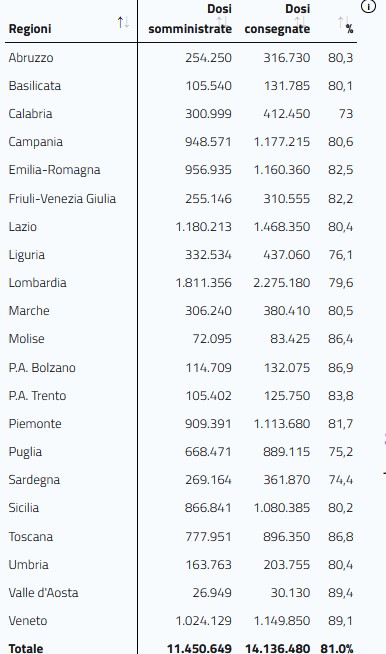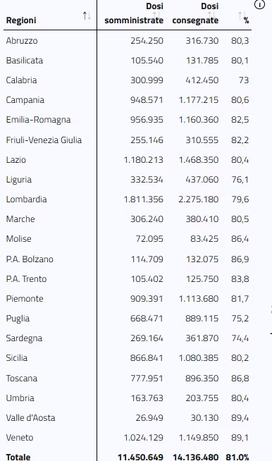 1,5 milioni di dosi Pfizer entro domani alle Regioni