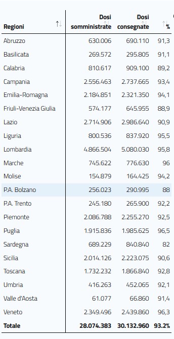 Gli attualmente positivi in Italia sono 315.308 (-7.583), mentre i dimessi o guariti sono 3.727.220 (+11.831). Lombardia e Campania si dividono il podio come regioni con il maggior incremento di casi Covid nelle ultime 24 ore: entrambe le regioni vedono 598 nuove infezioni. Sotto le 500 unità ci sono Piemonte (+437), Sicilia (+411) e Puglia (+407). Dieci le regioni che vedono aumenti sotto le tre cifre: tra queste il Molise, con solo 3 casi.