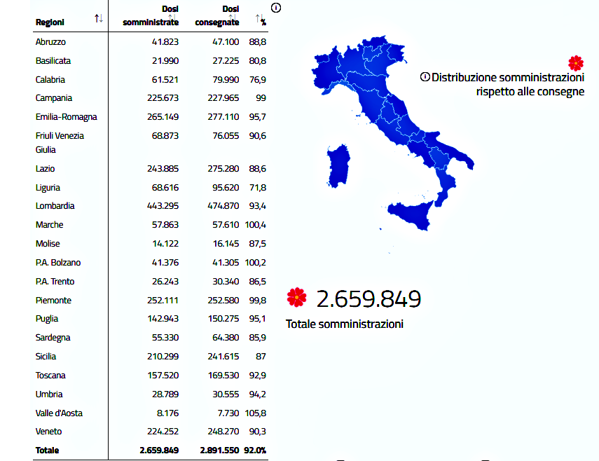 E’ di 10.630 nuovi contagiati il bilancio delle ultime 24 ore nel nostro Paese e di 422 i decessi. È quanto emerge dall’odierno bollettino sull’emergenza coronavirus del ministero della Salute-Iss. Ieri si erano registrati 7.970 nuovi casi su 144.270 tamponi, con un indice di positività pari al 5,5%. Le vittime erano state 307. I tamponi sono stati 274.263 (tra test molecolari e antigenici), anche questi in aumento rispetto a ieri quando erano stati 144.270, oltre 130 mila in meno. Il tasso di positività è in calo, ora al 3,9% (ieri era stato del 5,5%). Le persone ricoverate in terapia intensiva in Italia per il Covid-19 sono 2.143, numero invariato rispetto a ieri, nel saldo tra entrate e uscite. Gli ingressi giornalieri in rianimazione sono stati 146. I ricoverati con sintomi sono invece 19.512, in calo di 15 unità rispetto a ieri. Mentre i guariti, sempre nelle ultime 24 ore, sono 15.827.