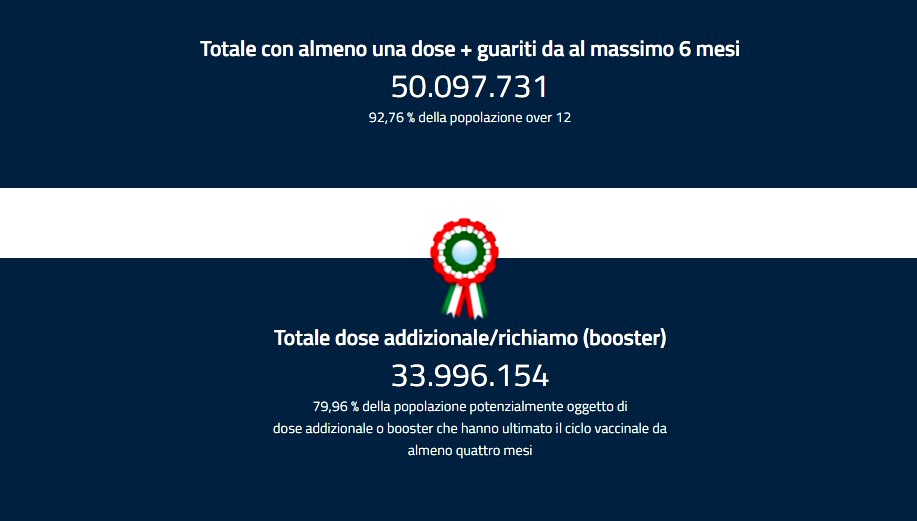 Compresi quelli molecolari e gli antigenici, i tamponi effettuati sono stati 964.521, ovvero 282.466 in meno rispetto ai 1.246.987 di ieri. Il tasso di positività, ieri al 10,7%, oggi sale al 12,3%. Sul fronte del sistema sanitario, si registra ancora una diminuzione delle degenze in ogni area. Sono infatti -323 (ieri -40), per un totale di 19.550 ricoverati, i posti letto occupati nei reparti Covid ordinari, mentre sono -25 (ieri -35) i posti letto occupati in terapia intensiva: il totale dei malati più gravi è ora pari a 1.524, con 104 ingressi in rianimazione (ieri 107).