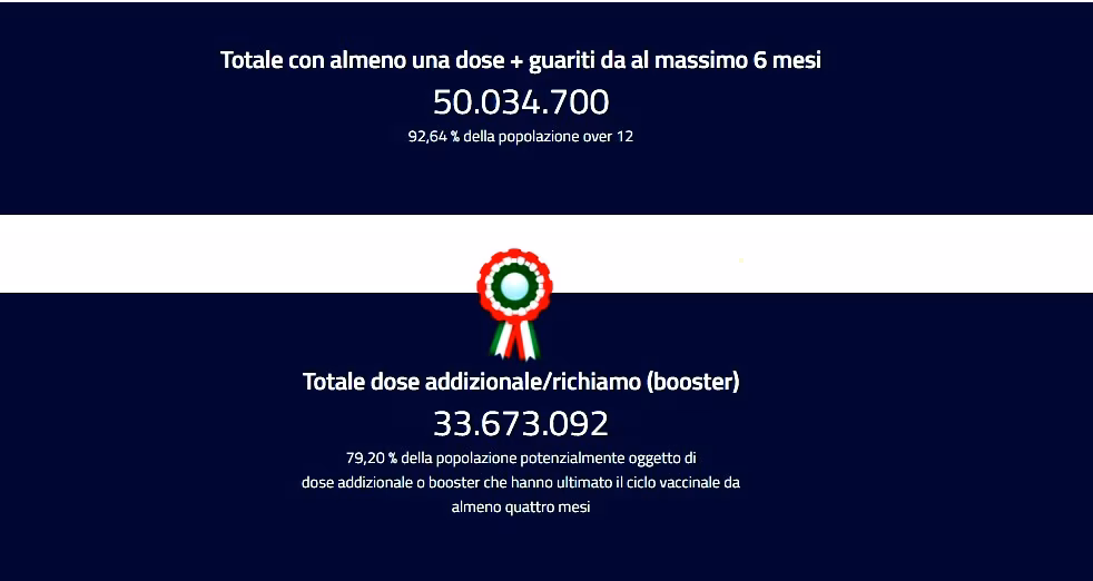 In cifre, secondo l’odierno bollettino del ministero della Salute sull’emergenza, sono 133.142 i nuovi casi di positività al Covid-19 (ieri 57.715) e 427 i decessi (ieri 349) registrati in Italia nelle ultime 24 ore. Dall’inizio dell’epidemia sono 11.116.422 le persone che hanno contratto il virus Sars-CoV-2, mentre da febbraio 2020 le vittime totali sono 146.925. Sono in tutto 8.492.983 le persone guarite o dimesse e 248.791 quelle diventate negative nelle ultime 24 ore (ieri 108.493). Sono in tutto 2.476.514, pari a -116.092 rispetto a ieri (-51.211 il giorno prima), le persone attualmente positive. Compresi quelli molecolari e gli antigenici, i tamponi effettuati sono stati 1.246.987, ovvero 768.673 in più rispetto ai 478.314 di ieri. Il tasso di positività, ieri al 12,1%, oggi scende al 10,7%. Sul fronte del sistema sanitario, le persone in terapia intensiva sono 1.549 (-35), quelle nei reparti ordinari sono 19.873 (-40).