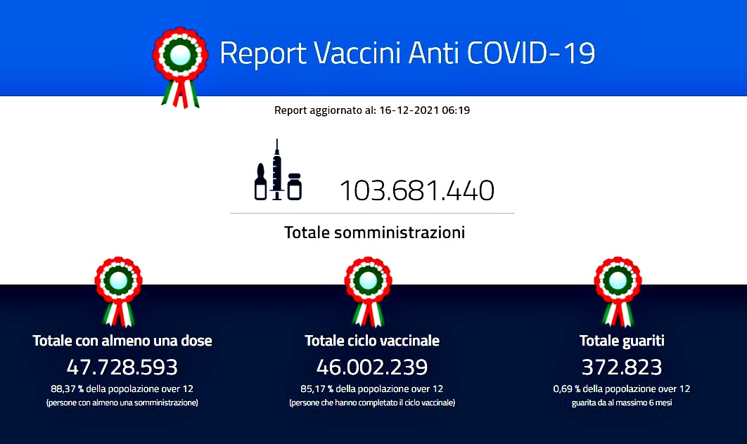 Il monitoraggio indipendente della Fondazione Gimbe rileva nella settimana 8-14 dicembre 2021, rispetto alla precedente, un aumento di nuovi casi (124.568 vs 105.771, pari a +17,8%) e decessi (663 vs 558, +18,8%, di cui 21 riferiti a periodi precedenti). In aumento anche i casi attualmente positivi (297.394 vs 240.894, +56.500, pari a +23,5%), le persone in isolamento domiciliare (289.368 vs 234.040, +55.328, pari a +23,6%), i ricoverati con sintomi (7.163 vs 6.078, +1.085, pari a +17,9%) e le terapie intensive (863 vs 776, +87, pari a +11,2%). Il presidente della Fondazione Gimbe, Nino Cartabellotta, dichiara che ‘da due mesi continuano ad aumentare i nuovi casi con una media mobile a 7 giorni che passa da 2.456 il 15 ottobre a 17.795 il 14 dicembre’. Incrementano nettamente i rapporti positivi/persone testate (da 3,6% a 23,9%), positivi/tamponi molecolari (da 2,4% a 9,5%) e positivi/tamponi antigenici rapidi (da 0,07% a 0,81%). In tutte le regioni, ad eccezione di Friuli-Venezia Giulia, Molise e provincia autonoma di Bolzano, si rileva un incremento percentuale dei nuovi casi: dal 4,4% dell’Abruzzo al 94,8% della Basilicata.