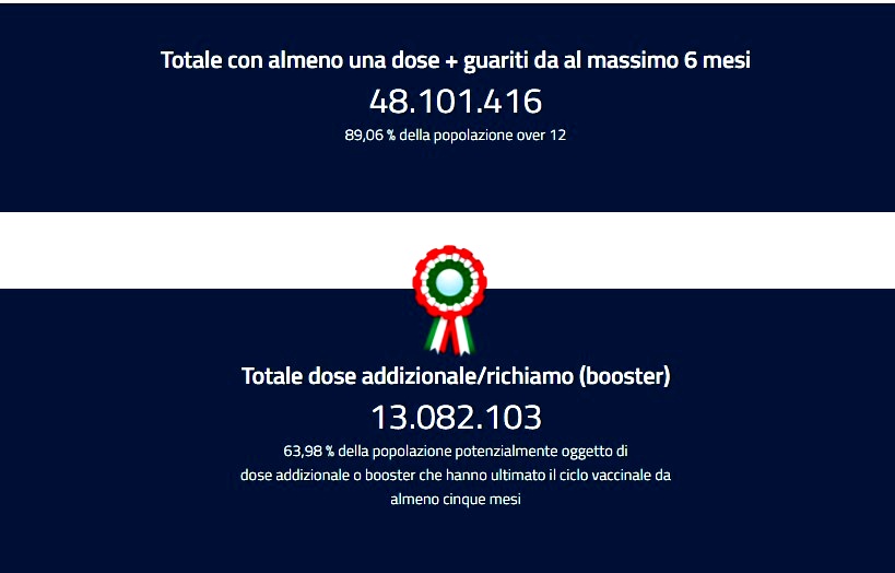 Sono 26.109 i nuovi casi di positività al Covid-19 (ieri 20.677) e 123 i decessi (ieri 129), registrati nelle ultime 24 ore in Italia. È quanto emerge dall’ultimo bollettino del ministero della Salute. I nuovi contagi non sono così alti dal 12 marzo scorso, quando furono 26.824. Dall’inizio dell’epidemia le persone che hanno contratto il virus Sars-CoV-2 sono 5.308.180, quelle guarite sono 4.854.949, mentre da febbraio 2020 le vittime totali sono 135.301. Compresi quelli molecolari e gli antigenici, sono stati 718.281 i tamponi processati nelle ultime 24 ore, ovvero 83.643 in più rispetto ai 634.638 di ieri. Rimane stabile il tasso di positività, ieri al 3,65%, oggi pari al 3,6%. Aumentano anche le terapie intensive (+47), per un totale di 917, e i ricoveri (+29).