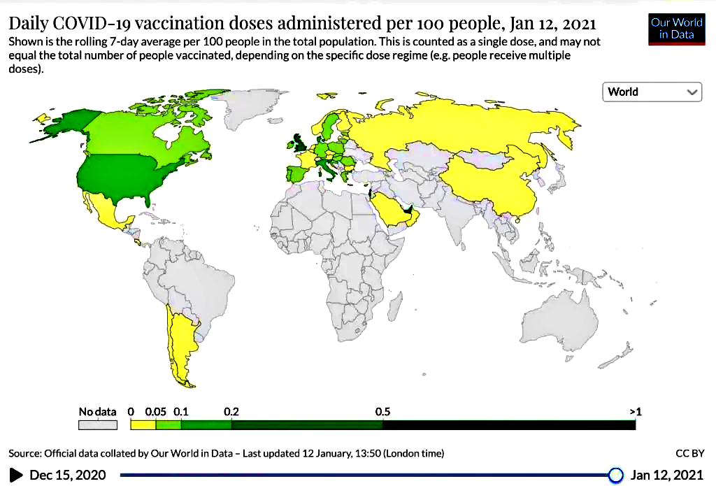 Perché l’Africa è tutta grigia?. È tutta grigia, e senza vaccini, perché l’Occidente e i Paesi del mondo ricco, si sono presi tutto. L’Unione Europea, da sola ha già comprato abbastanza dosi per vaccinare per due volte l’intera popolazione del continente. Lo stesso vale per gli Stati Uniti d’America, per il Regno Unito, per l’Australia e per il Cile. Il Canada, addirittura, ha ordinato abbastanza vaccini per vaccinare tutta la sua popolazione per cinque volte. In Africa la situazione è molto diversa. Secondo l’Organizzazione mondiale della sanità, solo un quarto di tutti i Paesi africani ha la disponibilità finanziaria per una campagna vaccinale adeguata. E anche dove questa disponibilità esiste, ci sono difficoltà logistiche enormi. Ad esempio, nessun Paese africano ha la possibilità di gestire la catena logistica del vaccino Pfizer Biontech, che dev’essere conservato a meno 80 gradi. E, per il momento, ci sono siringhe abbastanza per vaccinare poco più di un terzo della popolazione africana, così come manca il personale sanitario necessario che inoculi materialmente il vaccino.