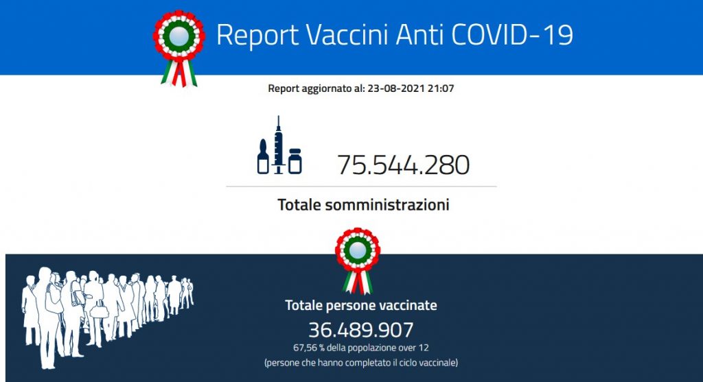 Non vanno bene le cose in Sicilia che ha disposto nuove restrizioni (e due comuni sono in zona arancione). Sul fronte dei vaccini, da registrare l’opinione del professor Massimo Galli, primario di Malattie infettive all’ospedale Sacco di Milano, secondo il quale una seconda dose di vaccino per chi dal Covid è guarito è “inutile e non priva di rischi”. Mentre il sottosegretario del ministero della Salute, Pierpaolo Sileri, esclude che il 15 settembre si possa arrivare a un radicale obbligo di vaccinarsi: “Per quel giorno saremo all’80% delle immunizzazioni”.