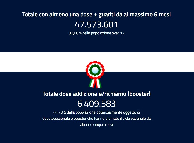 Sono in tutto 4.700.449 le persone guarite o dimesse, mentre quelle attualmente positive sono 194.270, pari a +4.627 rispetto a ieri (+3.200 il giorno prima). Compresi i molecolari e gli antigenici, sono stati 719.972 i tamponi totali processati, ovvero 443.972 in più rispetto ai 276.000 di ieri. Il tasso di positività, ieri pari al 2,9%, scende all’1,8% (l’approssimazione di 1,77%). Sul fronte del sistema sanitario non si arresta l’aumento delle degenze in ogni area. Sono infatti +92 (ieri +171), per un totale di 5.227 ricoverati, i posti letto occupati nei reparti Covid ordinari. Sono +14 (ieri +31) i posti letto occupati in terapia intensiva: il totale dei malati più gravi è ora pari a 683, con 64 ingressi in rianimazione (ieri 58).
