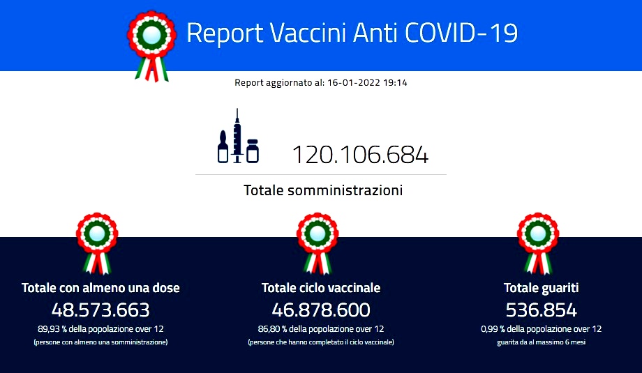 Sul fronte ospedaliero, aumentano ancora le terapie intensive (+14) e i ricoveri ordinari (+349). A fronte di quasi un milione di tamponi effettuati, il tasso di positività sale al 16,1%. Ricoverati con sintomi meno gravi, negli ospedali, ci sono 18.719 pazienti (ieri erano 18.370). Sono sottoposti a cure intensive 1.691 persone (ieri erano 1.677). Nelle ultime 24 ore, si sono resi necessari 128 nuovi ingressi in rianimazione, cifra più bassa di quella del giorno precedente, pari a 141. I dimessi e i guariti sono invece 6.016.954, con un incremento di 79.207 rispetto a ieri.