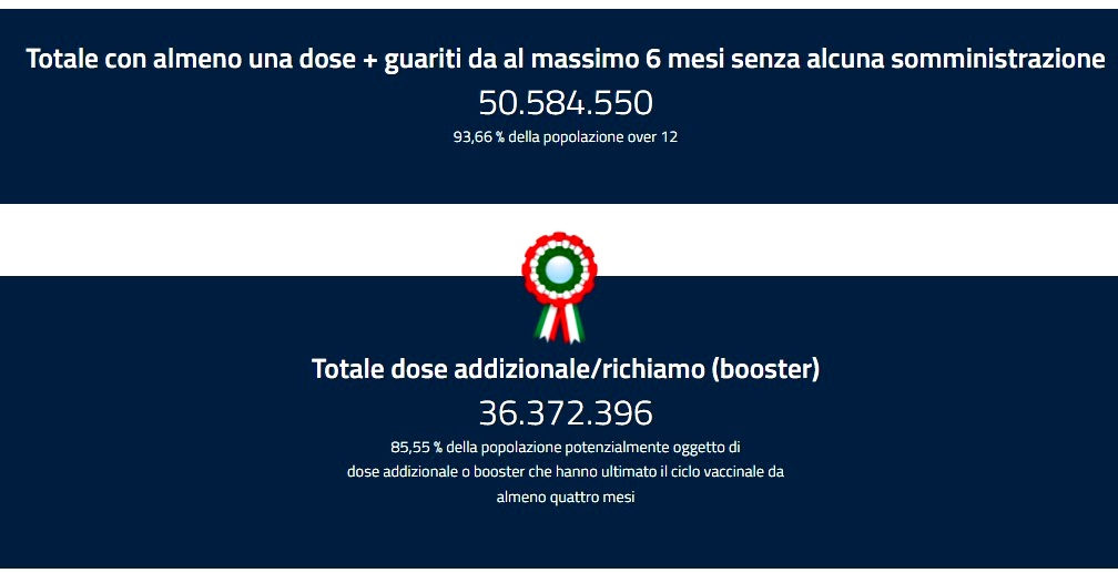 Compresi quelli molecolari e gli antigenici, i tamponi totali processati sono stati 695.744, ovvero 411.853 in più rispetto ai 283.891 di ieri. Il tasso di positività, ieri al 10%, oggi è pari al 10,2%. Sul fronte del sistema sanitario, anche oggi si registra un calo delle degenze in ogni area. Sono infatti -448 (ieri -10), per un totale di 15.602 ricoverati, i posti letto occupati nei reparti Covid ordinari. Sono invece -54 (ieri -17) i posti letto occupati in terapia intensiva: il totale dei malati più gravi è ora pari a 1.119, con 87 ingressi in rianimazione (ieri 63).