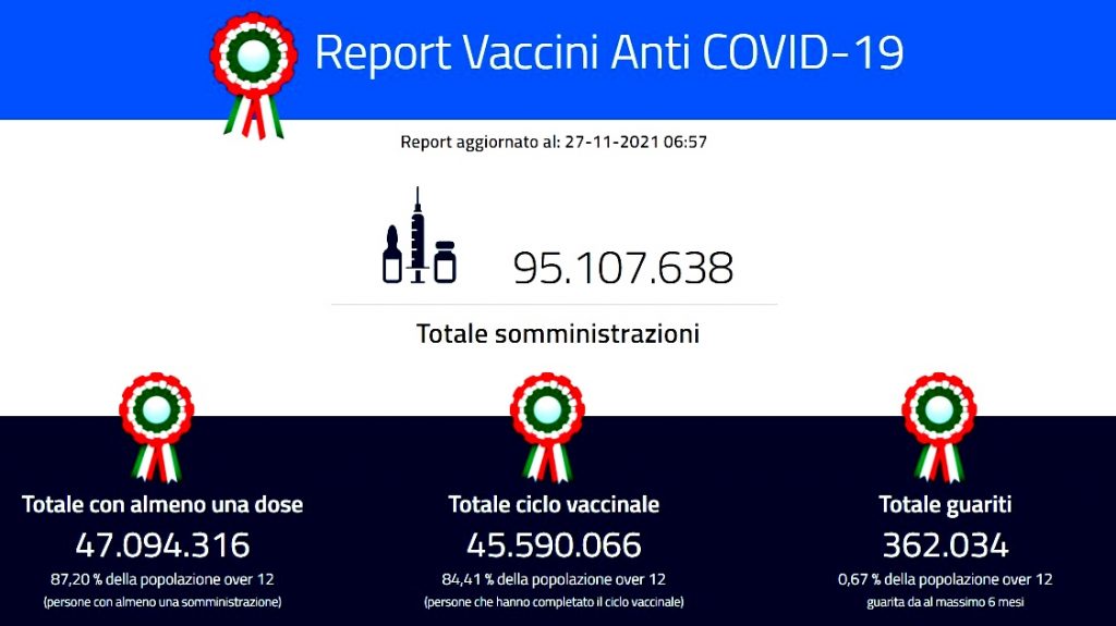 Calano i nuovi casi di Covid in Italia, crescono i morti. Intanto, il Veneto registra per il terzo giorno consecutivo oltre 2mila contagi e la Campania in allerta per il primo sospetto positivo di variante Omicron. Quest’ultima, la variante sudafricana, – forte di 32 mutazioni – spaventa l’Europa, che si blinda e chiude la frontiera al Sudafrica. Allarme anche in Olanda, dove sono risultati positivi 61 passeggeri arrivati dall’Africa australe, mentre si registrano casi accertati e sospetti in altri Paesi europei.