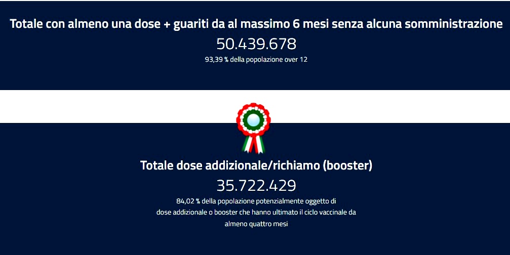 Dall’inizio dell’epidemia sono 11.923.631 le persone che hanno contratto il virus Sars-CoV-2, mentre da febbraio 2020 le vittime totali sono 150.221, superando dunque la soglia delle 150mila persone che hanno perso la vita dall’inizio dell’emergenza. Sono in tutto 9.960.136 le persone guarite o dimesse e sono 137.221 quelle diventate negative nelle ultime 24 ore (ieri 134.460). Le persone attualmente positive sono in tutto 1.813.274, pari a -61.351 rispetto a ieri (-53.175 il giorno prima). Compresi quelli molecolari e gli antigenici, i tamponi totali processati sono stati 683.715, ovvero 47.569 in meno rispetto ai 731.284 di ieri. Il tasso di positività è stabile all’11,1%. Sul fronte del sistema sanitario si registra una diminuzione delle degenze in ogni area. Sono infatti -578 (ieri -405), per un totale di 17.354 ricoverati, i posti letto occupati nei reparti Covid ordinari. Sono -28 (ieri -26) i posti letto occupati in terapia intensiva: il totale dei malati più gravi è ora pari a 1.322, con 83 ingressi in rianimazione (ieri 90).