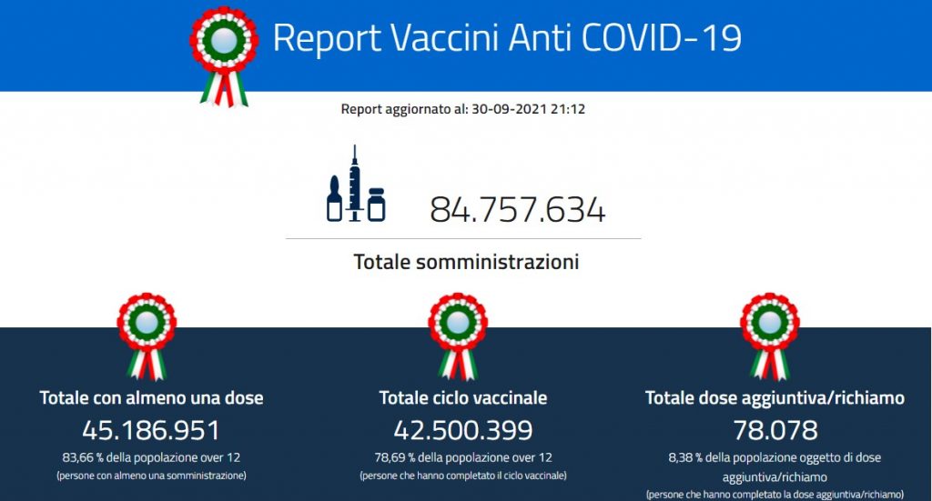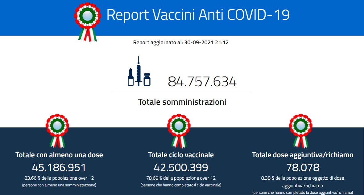I casi totali dall’inizio dell’epidemia sono 4.669.355. I guariti sono 5.714 (ieri 6.042), per un totale di 4.447.126. Ancora in calo il numero degli attualmente positivi, 1.671 in meno (ieri -2.893), e sono 94.308. Di questi, sono in isolamento domiciliare 90.670 pazienti. Prosegue costante il calo dei ricoveri: le terapie intensive sono 10 in meno (ieri -9) con 26 ingressi del giorno, e scendono a 440, mentre i ricoveri ordinari sono 119 in meno (ieri -101), 3.198 in tutto. La regione con il maggior numero di casi di positività nelle ultime 24 ore al Coronavirus è la Sicilia (500), davanti a Veneto (472), Lombardia (401), Emilia-Romagna (363), e Lazio (334).
