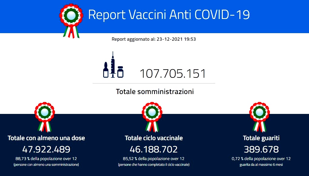 Il monitoraggio della fondazione GIMBE rileva inoltre, nella settimana 15-21 dicembre, un aumento dei nuovi casi in tutte le regioni ad eccezione della provincia di Bolzano e oltre 250 casi per 100 mila abitanti in metà delle province. Aumentano i ricoveri in area medica (+1.218), in terapia intensiva (+149) e i decessi (882 vs 663). Vaccinazioni: l’81% della popolazione ha ricevuto almeno una dose, ma le persone non vaccinate sono 9,67 milioni tra cui 2,37 milioni di over 50 e 3,55 milioni della fascia 5-11. Aumentano i nuovi vaccinati (+13,8%) grazie alle fascia 5-11. Il tasso di copertura per le terze dosi è pari al 51,2%.