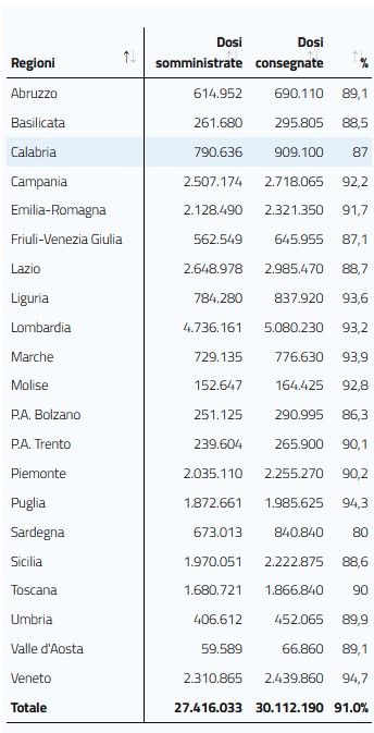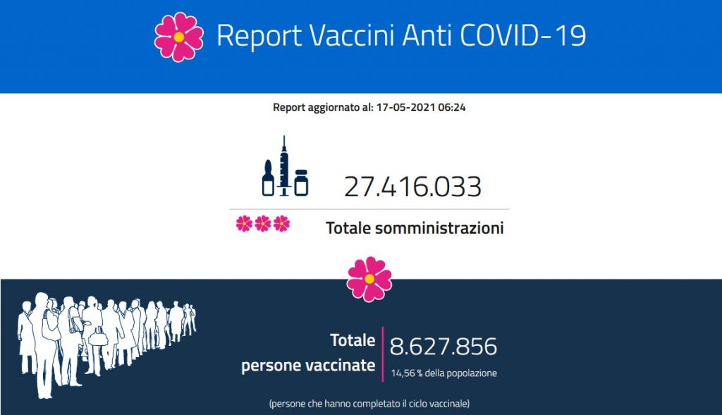 I dimessi/guariti sono invece 9.305, per un totale di 3.715.389 dall’inizio dell’epidemia. Sono 1.754 le persone ricoverate in terapia intensiva, 25 in meno rispetto a ieri. I pazienti ricoverati con sintomi con sintomi sono al momento 12.024. A livello territoriale, le Regioni con il maggior numero di contagi sono la Lombardia (675), la Campania (550), il Lazio (388) e la Toscana (382). Intanto, emerge dalla cabina di regia convocata a palazzo Chigi che le feste, comprese quelle dopo cerimonie civili e religiose saranno consentite dal 15 giugno, anche al chiuso. Agli ospiti sara’ richiesto il pass.