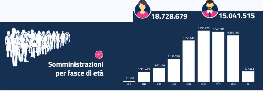 Intanto si registra un record di vaccinazioni anti-covid in Italia: in un giorno, ieri, sono state 563.176 le dosi somministrate, come conferma la struttura commissariale guidata dal generale Francesco Figliuolo, sottolineando il numero raggiunto ieri. Il totale delle somministrazioni effettuate è arrivato così a 33.555.795; il totale delle persone vaccinate (le persone che hanno completato il ciclo vaccinale) è di 11.495.551, il 19,40% della popolazione.