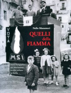 Se le foto sono incorrotte testimoni del tempo, quelle racchiuse nel libro di Nello Musumeci (Quelli della fiamma, Edizioni Cespos, euro 12,00) riannodano il filo di una memoria collettiva, appartenente a una comunità di uomini e donne che viene unita dalla tragica, ineludibile, consapevolezza di essere, alla fine della seconda guerra mondiale, la superstite retroguardia in Sicilia di una fede politica – quella fascista – giudicata e condannata senz’appello dal tribunale della Storia. Senza quel clima, tra reducismo repubblichino e orgogliosa rivendicazione di una idealità politica – a quel tempo – considerata eretica, è del resto difficile comprendere la ragione per cui ogni militante missino – il Movimento Sociale Italiano si costituisce nel dicembre 1946 – appare eversivo già nel momento stesso in cui sconfessa, con la sua azione politica, la narrazione imperante dei vincitori e ribadisce tutte le attenuanti – ideali e fattuali – che ogni sconfitta pur sempre riserva. Nelle pagine del libro scorre così la storia fotografica di un mondo che, negli anni Cinquanta e Sessanta, si muove come un fiume carsico, tra le viscere di un Paese tormentato e crudele, benché altrettanto pronto ad affiorare sulla scena sociale – con la nascita nel 1950 della Cisnal – e politica, non appena vacilli – seppur per mero tatticismo politico – la discriminante contro il Movimento Sociale, che si consuma all’interno di quell’arco costituzionale che comprende le forze antifasciste, ad opera di una Democrazia Cristiana la quale, dopo l’esperienza dei governi centristi ispirati dall’alta guida morale e politica di De Gasperi, è ancora impaurita e perplessa riguardo all’embrassons – nous con le sinistre. Da parte sua, il partito di Michelini sa di giocare una partita estremamente importante per la propria sopravvivenza. Minacciato più volte di scioglimento per reato di apologia fascista, il leader toscano se si mostra propenso al soccorso parlamentare alla DC tenterà, altresì, di dare dignità e agibilità politica all’espressione di milioni di voti d’italiani prospettando, seppure con poco successo, un rassemblement tra le forze conservatrici per un’area nazionale, moderata, anticomunista – quella che, anni dopo, Almirante battezzerà come Destra Nazionale – che lo potesse sottrarre dalle volubili inclinazioni del partito di Moro e di Fanfani nello scegliere i propri alleati tra le diverse forze di quel caleidoscopio rappresentato dallo schieramento politico alla sua destra, secondo le spregiudicate convenienze del momento.