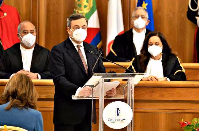 Prima uscita pubblica da presidente del Consiglio per Mario Draghi che ha partecipato a Roma, nell’Aula delle Sezioni riunite della Corte dei conti, insieme con il Presidente della Repubblica Sergio Mattarella, alla cerimonia di inaugurazione dell’anno giudiziario 2021 e di insediamento del Presidente della Corte dei conti, Guido Carlino. Corte di cui ha ricordato il ruolo fondamentale di controllo, fondamentale soprattutto in questo momento storico.