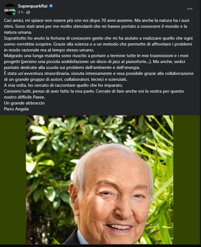 E’ morto Piero Angela. Il figlio: “Buon viaggio papà”